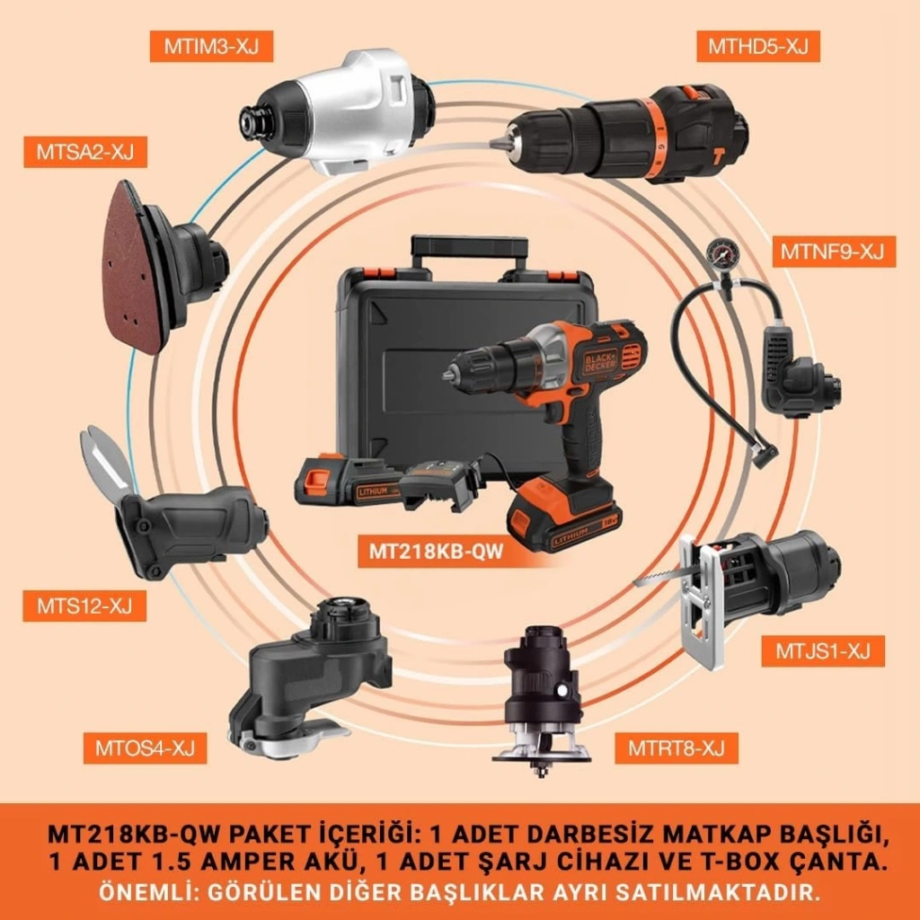 Black+Decker MT218KB-QW 18V Multievo 1.5 Ah Çift Akülü Vidalama