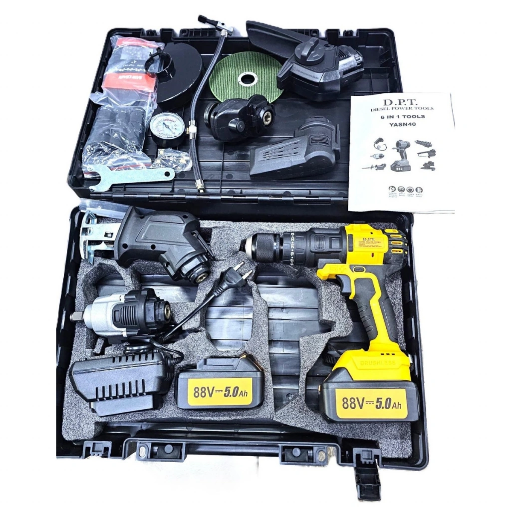 6 Lı Muhteşem Set Şarjlı Matkap Testere Tilki Kuyruğu Taşlama Somun Sökme Havalı Pompa Bir arada Mavi 58VF