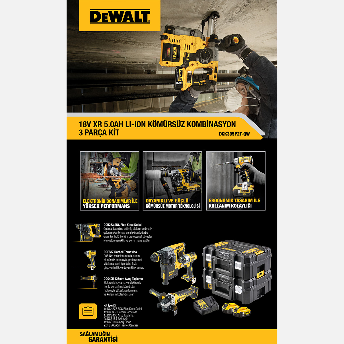 DeWalt DCH273 18v XR Akülü Kömürsüz SDS Plus Darbeli Matkap, sağlam yapısı ve güçlü motoru sayesinde, dübel delme ve sabitleme delikleri gibi yüksek yoğunluklu beton veya duvar delme uygulamaları için idealdir. Dönme durdurma modu, matkabın fayans ve alçıda hafif keskileme için kullanılmasına olanak tanırken, darbe durdurma modu ise ahşap ve metalde yalnızca döner delme için kullanılabilir.