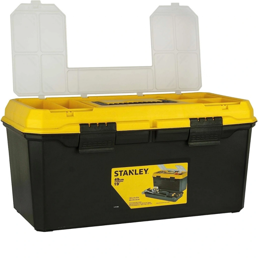 Stanley 19 inç organize alet kutusu, hem profesyonel kullanıcılar hem de hobi amaçlı kullananlar için mükemmel bir saklama ve düzenleme çözümüdür. Üst kısmında yer alan şeffaf kapaklı organizer bölmeler, küçük el aletleri, vida, dübel, çivi ve bağlantı elemanlarını kolayca kategorize etmenizi sağlar. Ana bölme ise daha büyük el aletleri için geniş alan sunar.