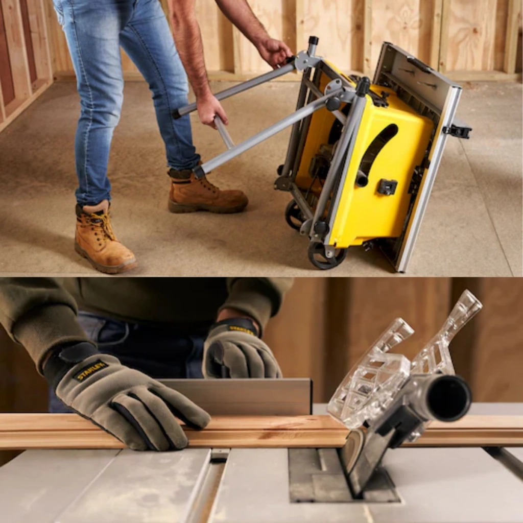 Stanley SST1800 1800Watt 254Mm Profesyonel Tezgâh Tipi Testere Yüksüz hızı 4800 dev/dk Bıçak çapı 254mm Bıçak göbek çapı 30mm 90° kesme derinliği 80mm 45° kesme derinliği 50mm Tabla Boyutu 560x870 mm 34 kg‘lık ağırlık ve optimize edilmiş kaplama alanı ile bu ürün sınıfının en portatif testeresidir Çelik rulo kafes, testereyi şantiyede yaşanabilecek düşme ve darbelere karşı korur Kademesiz ayar sistemi, ön ve arka kilitleme ve görünür skala bu testereyi son derece hassas ve kolay kullanılır hale getirir Güçlü 1800W motor ile tüm uygulamalarda yüksek performans Geniş malzemeleri ölçüsünde kesmek için 480mm‘den fazla kesme kapasitesi sağlayan teleskobik korkuluk rayları Hassaslık ve kesinlik için dökme tezgâh tasarımı Aşırı yük koruması, sert, ıslak veya donmuş ahşapta güçlü performans sağlar Kolay ayarlama için geniş ölçekli hızlı zıvana Engebeli şantiye arazisinde bile rahat taşıma için büyük lastik tekerlekler Sağlam ayaklar sayesinde her zeminde sağlam duruş