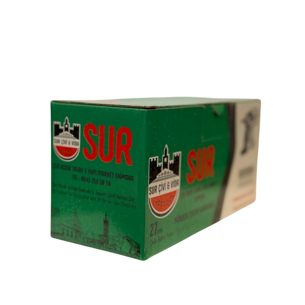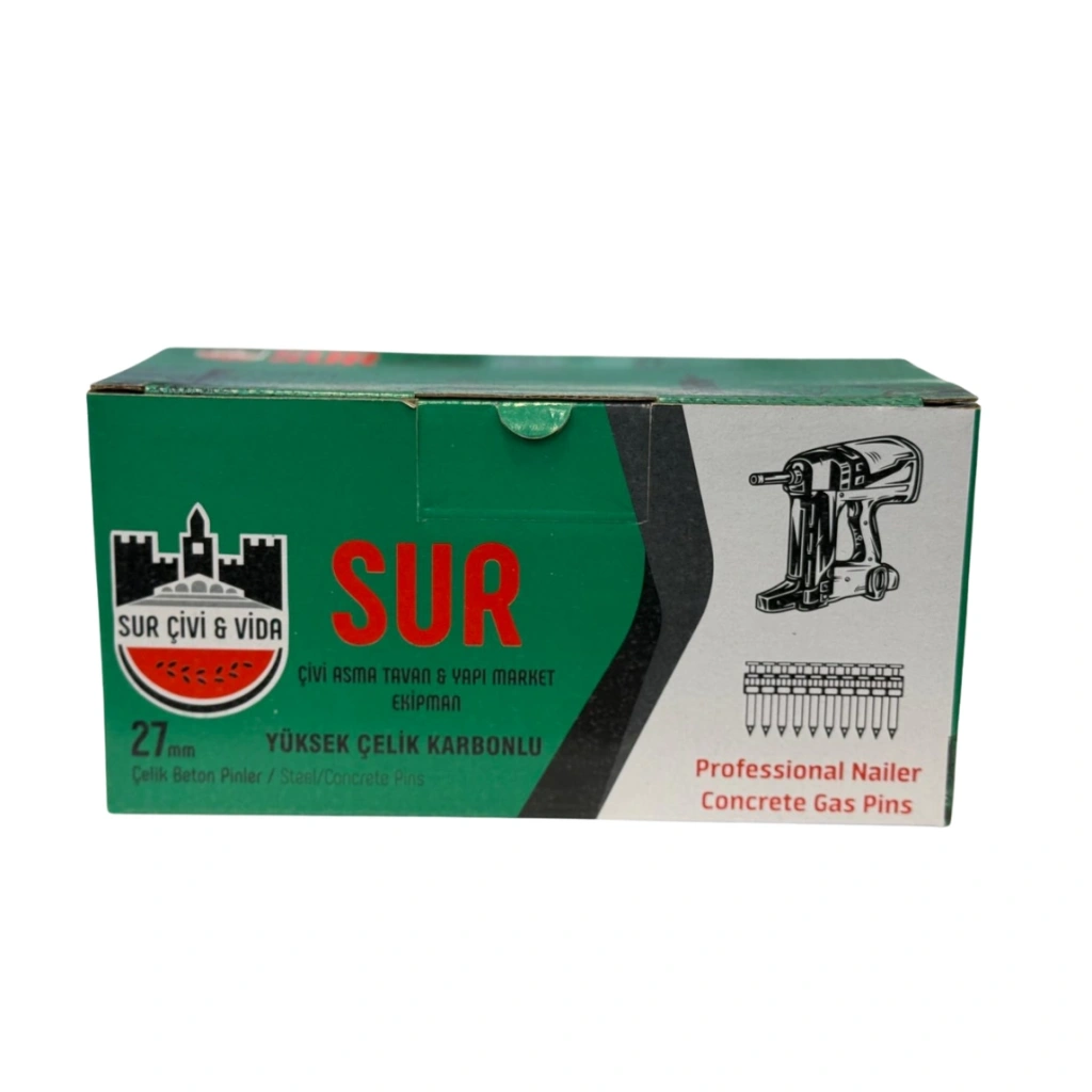 SUR markasının yüksek karbonlu çelikten üretilmiş 27 mm beton çivileri, profesyonel çivi tabancalarıyla kullanıma uygun şekilde tasarlanmıştır. Beton, çelik ve sert yüzeylerde mükemmel tutuş sağlar.