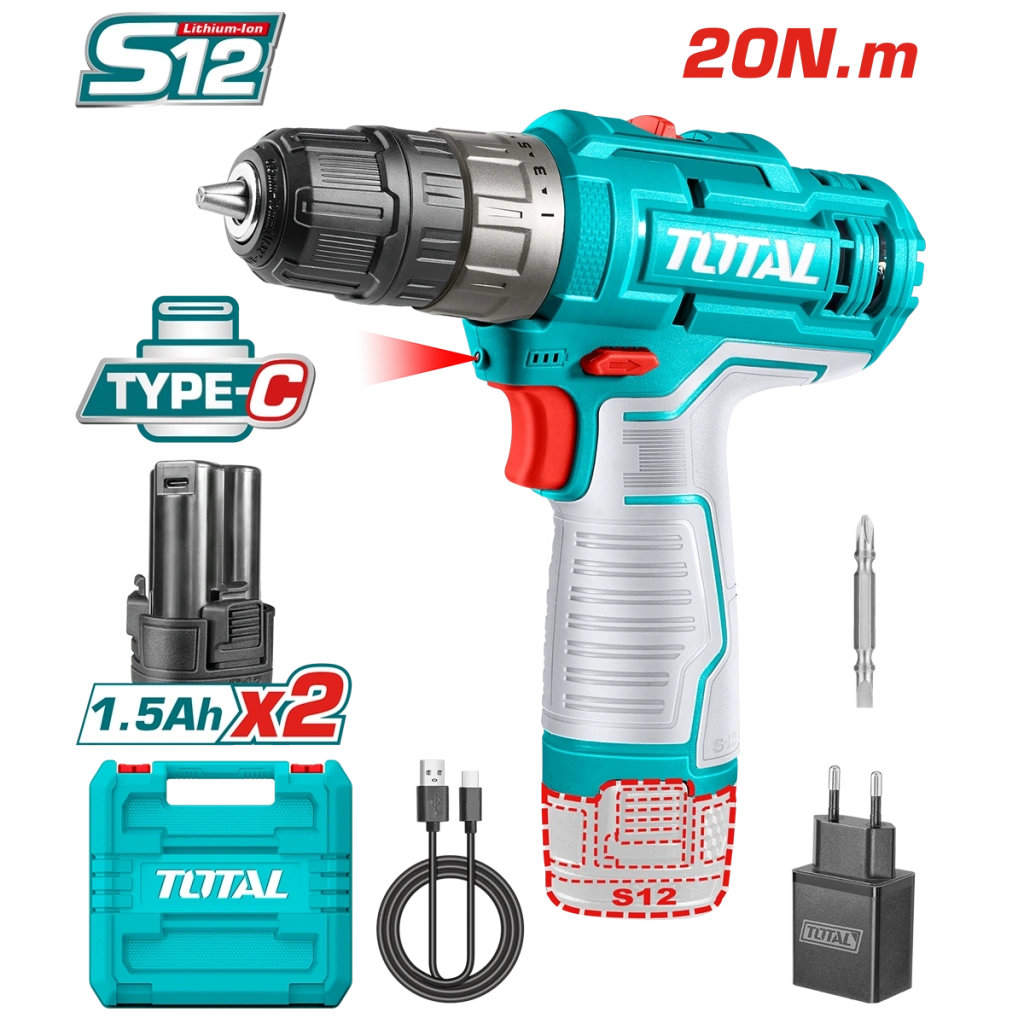 Total 12V 1.5Ah Darbesiz Matkap - Kompakt ve Güçlü Performans