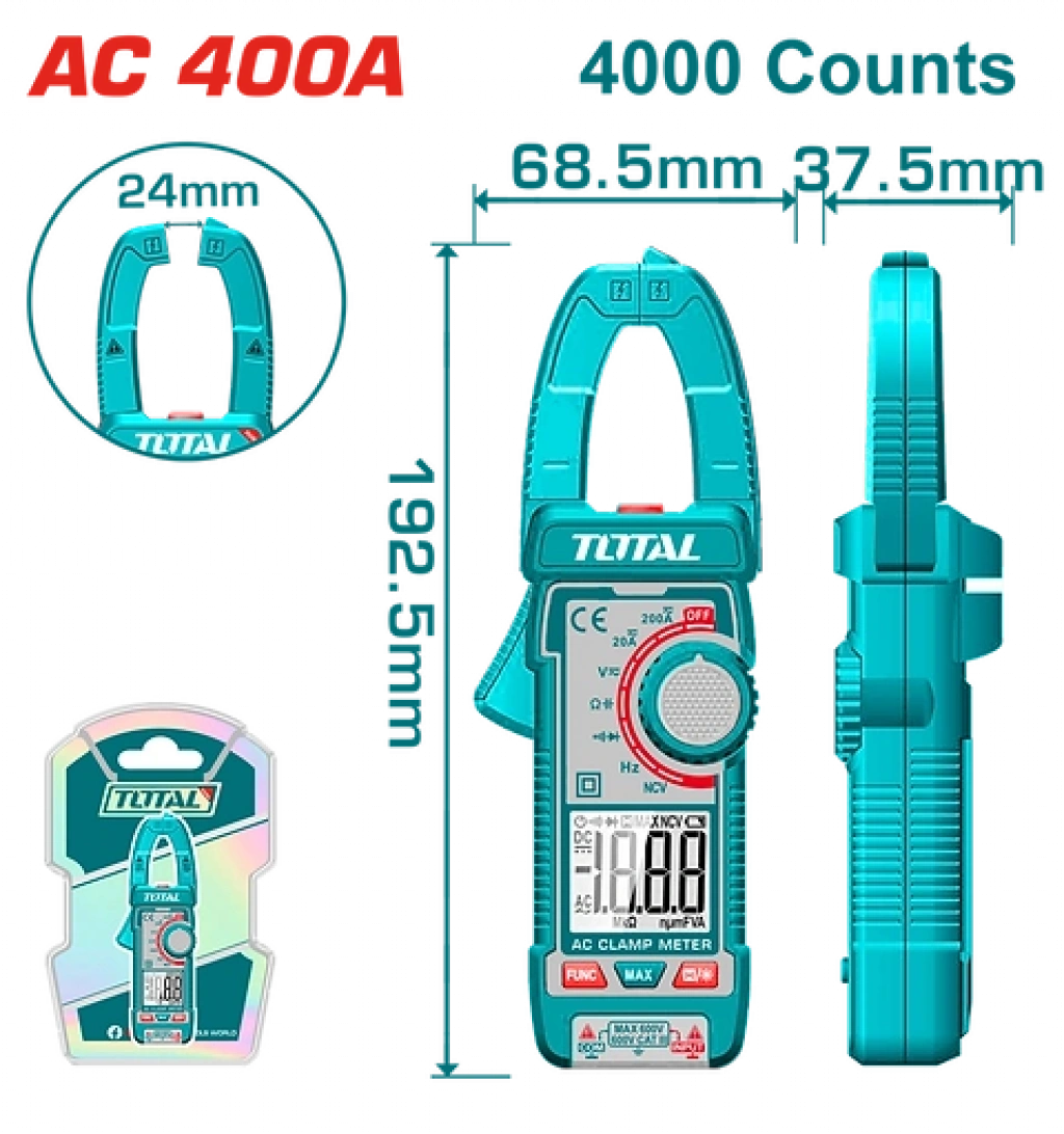 Total TMT762001, elektrik devrelerindeki akımı kabloyu kesmeden veya devre dışı bırakmadan ölçmenizi sağlayan güvenilir bir test cihazıdır. Modern tasarımı ve LCD ekranı sayesinde karanlık veya dar alanlarda bile okuma kolaylığı sunar.